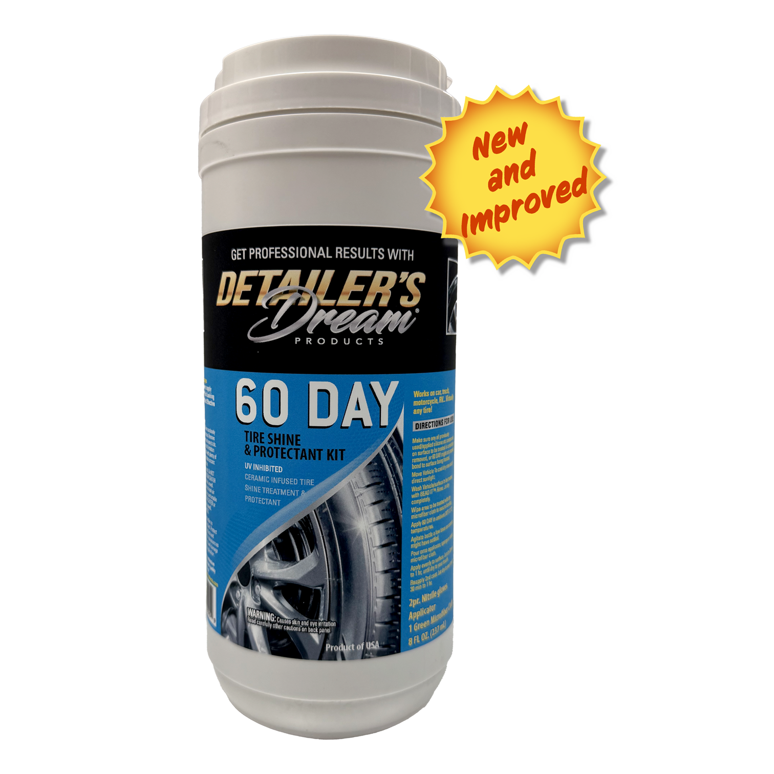 60 day kit, $15.95 (8 oz 60 Day, two pair of nitro extra large gloves, 60 Day tire shine applicator, microfiber towel)